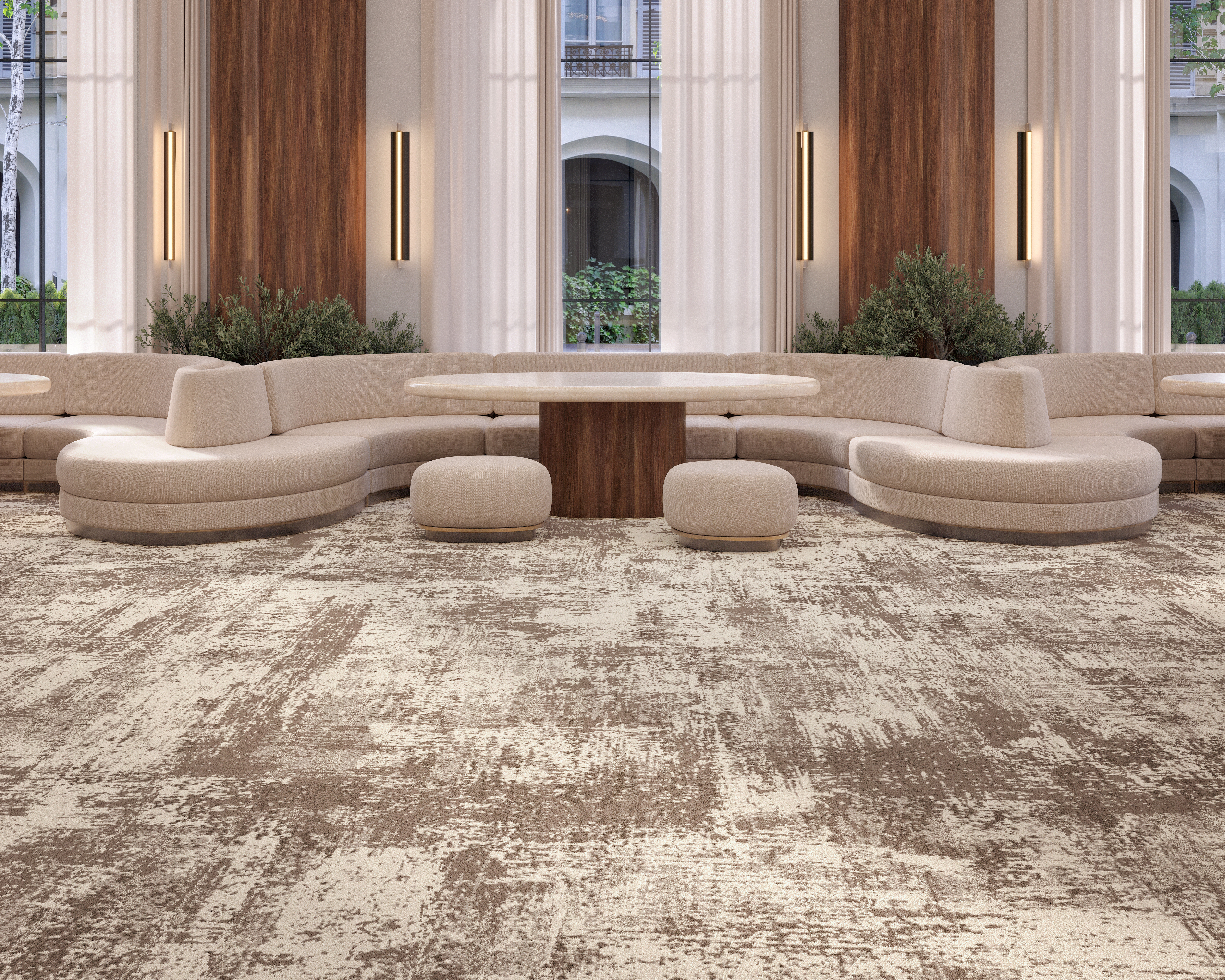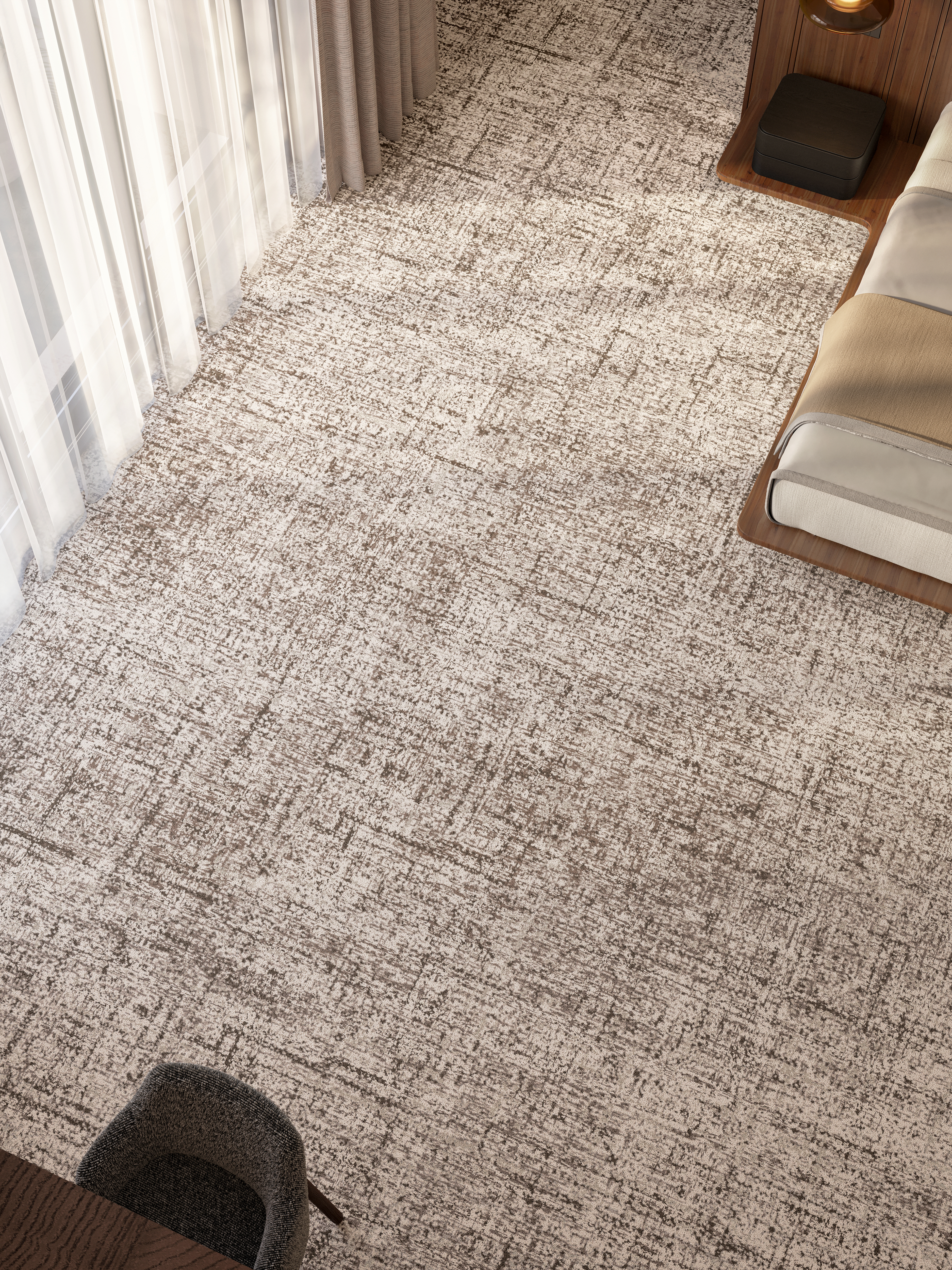 Diese für die Hotellerie konzipierte Kollektion aus hochdichtem Velours-Teppichboden vereint auf perfekte Weise Tradition und zeitgenössische Gestaltung.